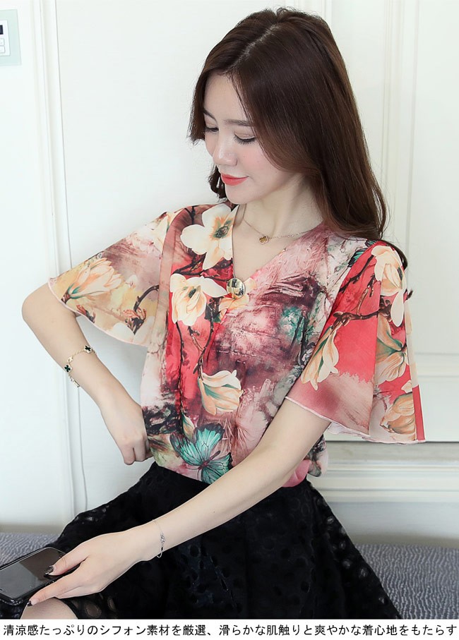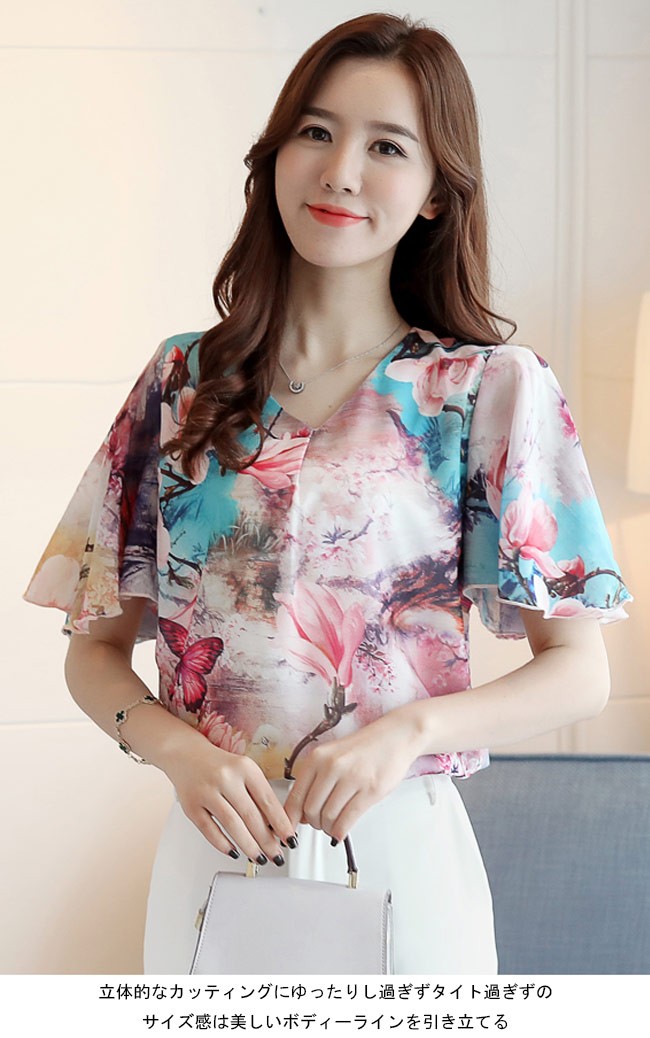 レディース シフォンブラウス 半袖 Vネック ゆったり 花柄 女性用 シフォン トップス 夏物 ベルスリーブ 半袖シャツ 半袖Tシャツ 通勤レディース用のシフォンブラウスが登場清涼感たっぷりのシフォン素材を厳選、滑らかな肌触りと爽やかな着心地をもたらすVネックデザインで美しい鎖骨部分を強調、小顔効果も果たせる袖部分はベルスリーブ仕様の半袖となっていて、とても甘くてフェミニンな香りを漂わせる立体的なカッティングにゆったりし過ぎずタイト過ぎずのサイズ感は美しいボディーラインを引き立てるパンツコーデにもスカートコーデにも似合い、ボトムス選ばずに着れる一枚カラー:1 2 3素材 ポリエステルサイズ(cm) L XL 2XL 3XLL 肩幅36 バスト96 着丈66XL 肩幅37 バスト100 着丈672XL 肩幅38 バスト104 着丈683XL 肩幅39 バスト108 着丈69ご注意:※サイズは平置きサイズです。素人採寸ですので、若干の誤差がございます、ご了承ください。