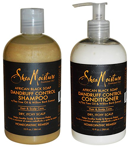 -. Feature : Set Includes 1 (13 Ounce) African Black Soap Dandruff Control Shampoo and 1 (13 Ounce) African Black Soap Dandruff Control Conditioner / Made with Tea Tree Oil and Willow Bark Extract / Hair and Scalp Care for Dry, Itchy Scalp - Dandruff Control Homeopathic Remedy / Made in the USA - Sulfate Free, Paraben Free, Phthalates Free, Cruelty Free - Certified Organic Ingredients / Soothes Scalp and Removes Flakes