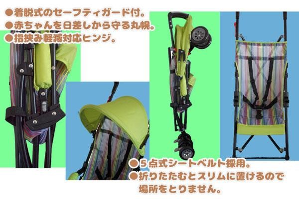 | メッシュシート採用、前輪キャスターで小回りスイスイ、後輪はストッパー付きで使いやすい♪赤ちゃんとママにやさしい機能がたくさんついています!! |