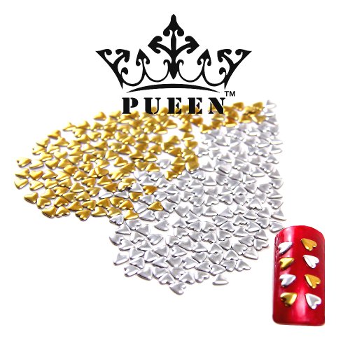 4mm Heart Shape Metal Studs for Nails, 150 pieces Gold & 150 pieces Silver