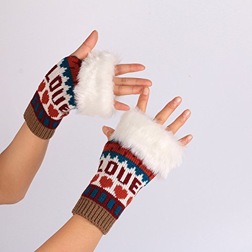Studio : Usaboutall Publisher : Usaboutall Binding : Apparel Product Description Type: Gloves Gender: Women's Style: Fashion Size: One Size Material: Acrylic Fiber, Faux Fur Features: LOVE Letters, Heart Pattern, Half-finger, Comfortable, Warm Gloves Size: Length: 18cm/7.09", Width: 8cm/3.15" (Approx.) Faux Fur Length: 6cm/2.36" (Approx.)