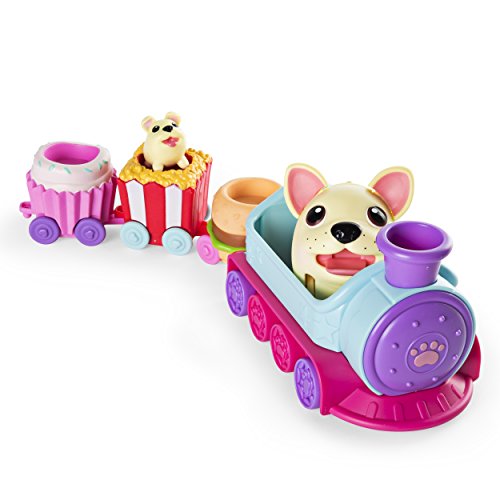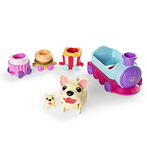 Toot, toot! The adorable train is pulling into the station! Grab your Chubby Puppies a seat on the Train playset. This train is built to transport stumbling fumbling, tumbling cuteness. In fact, since it’s puppy-powered, it needs a Chubby Puppy driver. Fortunately Lemondrop Frenchie (included) is along for the ride! Turn on and place this sweet pup in the driver’s seat to automatically power the train! But before it leaves the station, make sure all the seats are filled. There’s room for three Chubby Puppy Babies (one baby included) in each popcorn, cupcake and hamburger-shaped train compartment. All aboard! Next stop: cutie-pie city! Make sure you’re a part of the fun with the Train playset.Feature