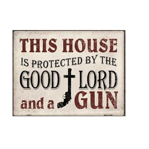 This House Is Protected By The Good Lord And A Gun Metal Sign