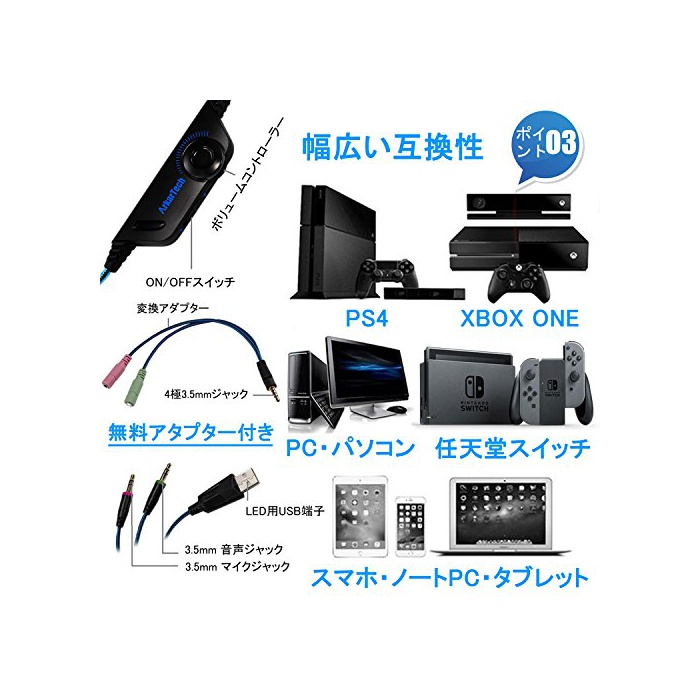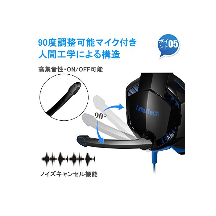 원본상품명: ゲミングヘッドセット マイク付き ArkarTech G2000 PCゲム用ヘッドホン ステレオ ヘッドアム伸縮可能 LED付 PC Switch PS4 Xbox One MAC Skype