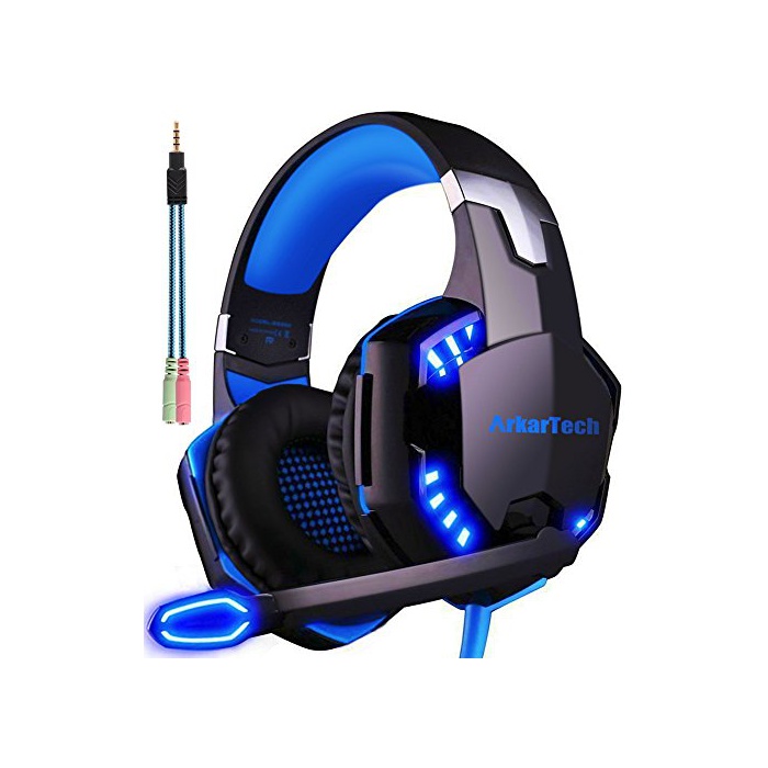 ARKARTECH gaming 헤드 세트 마이크 부착 ArkarTech G2000 PC게임용 헤드폰 스테레오 헤드 암 신축 가능 LED부속 PC Switch PS4 Xbox One MAC Skype