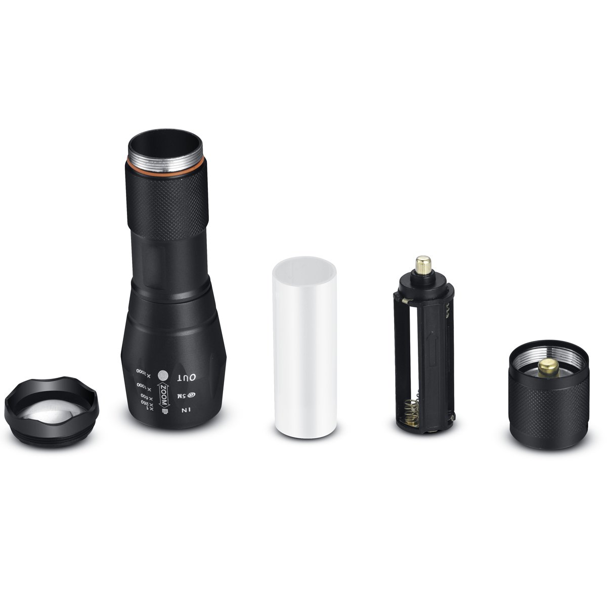 The product has a zoom function, it can change the focal point of the lens steplessly by pushing and pulling the lens