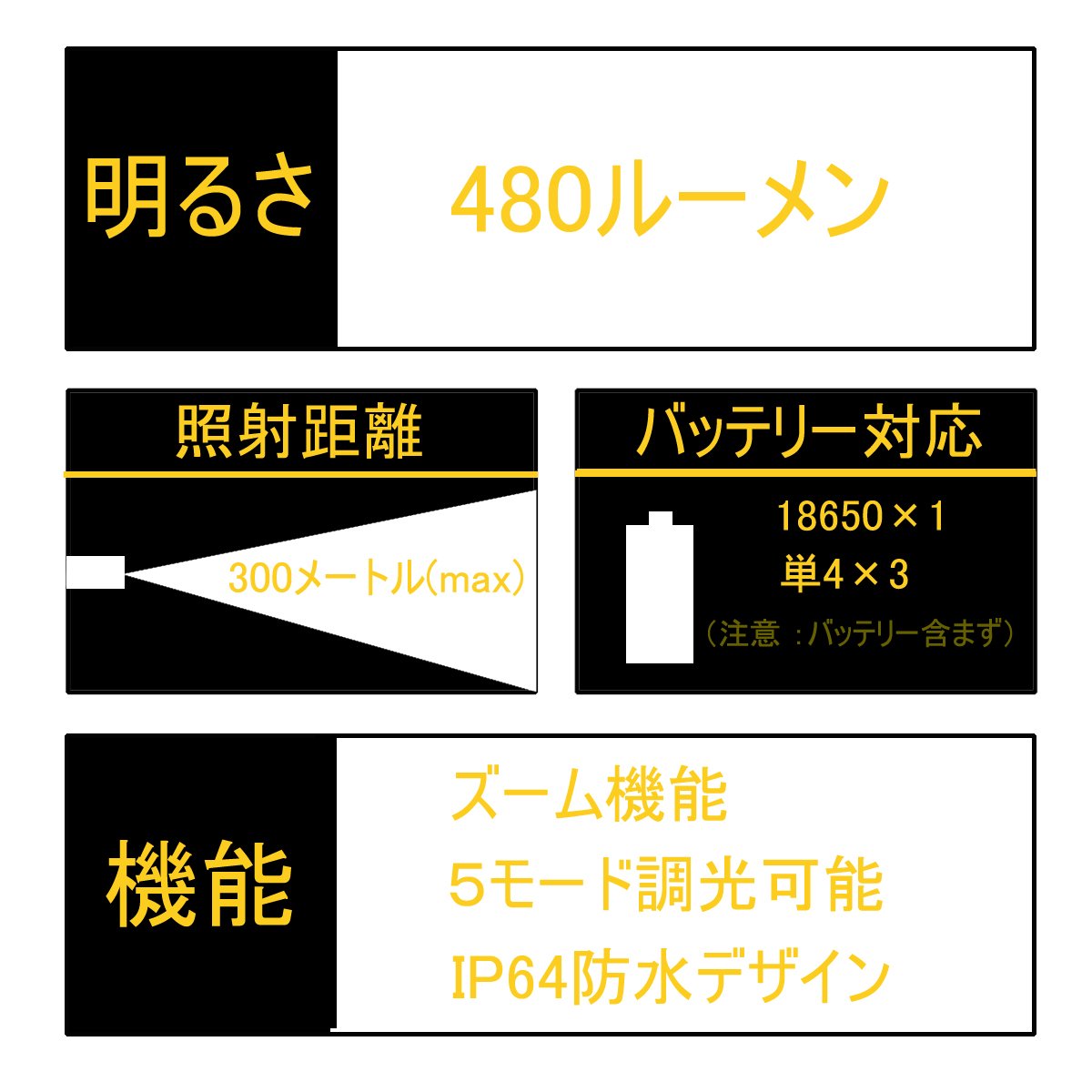 Flashlight Bicycle Accessories LED Handy Light 【Brightness 480 Lumens / IP64 Waterproof / Zoom Function / Lightweight 78 grams】 18650 / AAA Battery Compatible 2 Set