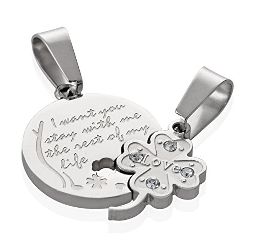-. Title : 2 Pcs Michley Women and Men Love Stainless Steel Pendant Four Leaves Clover Good Luck Couple Pendant Set
