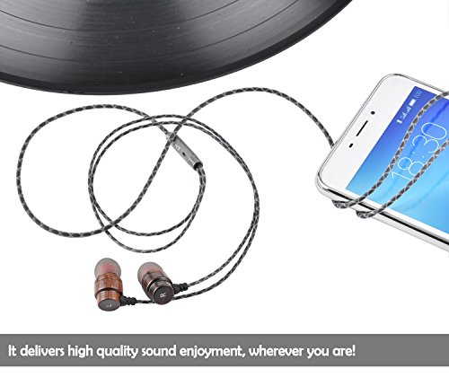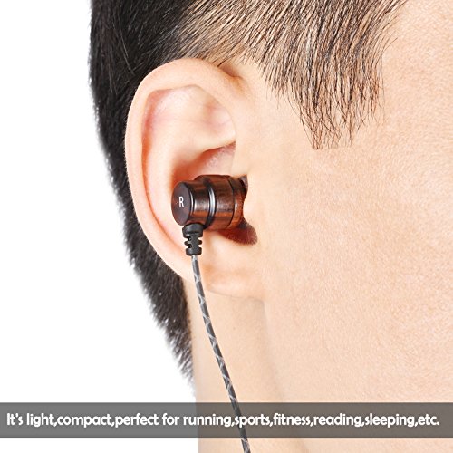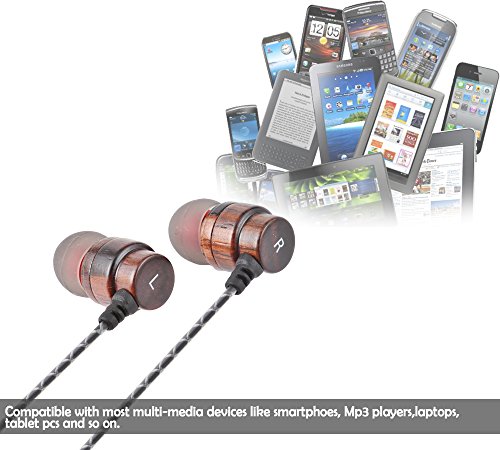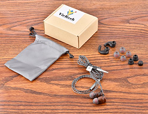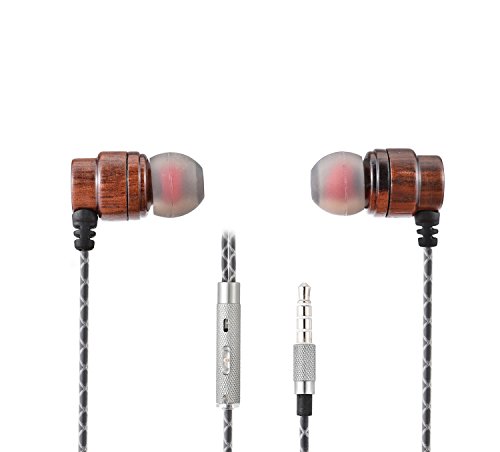 VirKech In-ear Stereo Rosewood Headphones Noise-isolating HiFi Earphones Music Headsets with HD Mic for Smartphone Tablet PC MP3 MP4