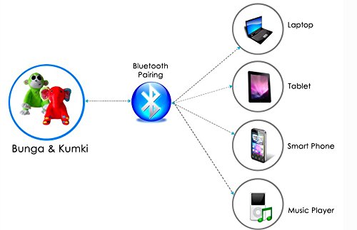 Feature : Connect to Smart phone,Tablet or any Bluetooth Enabled Device: Kumki pairs and connects to your iPhone, iPad, Android, Win8, MP3 Player, Tablet, Laptop, Smart phone or any Bluetooth enabled device. / Music Mate, Hours of Story time and Play Personalized Voices: Kumki plays songs, lullabies, audio storybooks and your baby's favorite music. Record songs or stories in your own voice and Kumki will play it back to your baby making it more personalized, which would meaningfully engage and keep your baby entertained for hours. Teach your baby essential sounds, making the learning process fun and engaging. / Baby Connect and Hands Free Phone: Talk to your baby or loved ones using Kumki. Kumki comes with a built-in Speaker and Microphone. Acts as a hands free phone when paired with a smart phone. Sing a song, tell a good night story and talk to your baby by calling a phone paired with Kumki. Kumki gives you the freedom to stay in touch with your loved ones from office, car or when you are away from home. / Wireless Speaker: Use Kumki as a wireless portable speaker. Pair it with your music player and start enjoying crystal clear sound both indoors and outdoors. / USB Charging and Extended Battery Life: Kumki has a built-in Lithium Ion battery and is chargeable through USB. It gives an extended battery life and amazing standby time when fully charged.