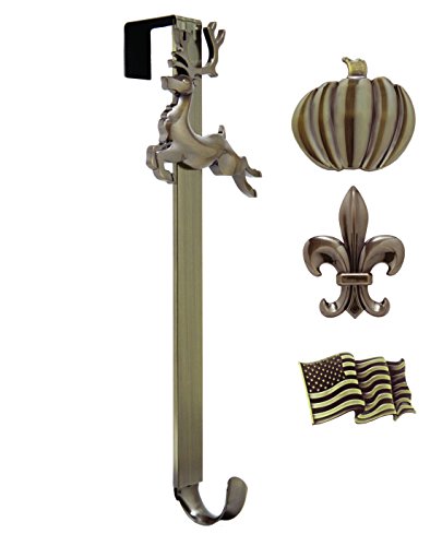 Adjustable Length Wreath Hanger with Interchangeable Icons (Oil Rubbed Bronze-Flag/Reindeer/Pumpkin/Fleur de lis)