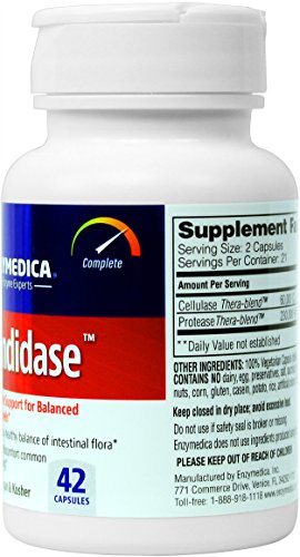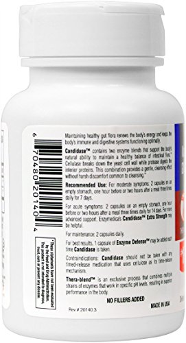 -. Binding : Health and Beauty -. Brand : Enzymedica -. Feature : THE BALANCE YOU'RE MISSING: Maintaining healthy gut flora is crucial to overall health, as it renews the body's energy and keeps the immune and digestive systems functioning optimally. When intestinal flora are balanced, yeast levels are kept in check and occasional discomforts such as digestion issues, sugar cravings, irritability, fatigue and poor memory can be avoided. / ENZYMES TO THE RESCUE: Candidase contains two enzyme blends that support the body's natural ability to maintain a healthy balance of intestinal flora, in turn promoting balanced candida levels. Cellulase breaks down the yeast cell wall while protease digests the interior proteins. This combination provides a gentle, cleansing effect without harsh discomfort common to cleansing. / EXCLUSIVE THERA-BLEND: Candidase contains Thera-blend enzymes. Thera-blend is an exclusive process that combines multiple strains of enzymes that work in specific pH levels, resulting in superior performance in the body. / FREE OF: Rest assured knowing that this product does not contain any egg, dairy, preservatives, salt, sucrose, soy, wheat, nuts, corn, gluten, casein, potato, rice, or any artificial colors or flavors. / QUALITY + EXPERIENCE: Enzymedica was founded in 1998 with the purpose of offering our customers the highest-potency enzyme products possible. Our goal of educating people about the importance of enzymes in overall health is what motivates Enzymedica. All of our products are made from only the highest quality enzymes and contain absolutely no fillers to ensure purity. Every product is 100% vegetarian, and we seek out vegan and Kosher ingredients whenever possible. -. ProductGroup : Health and Beauty -. ProductTypeName : HEALTH_PERSONAL_CARE -. Title : Enzymedica - Candidase, Complete Support for Balanced Yeast Levels, 42 Capsules