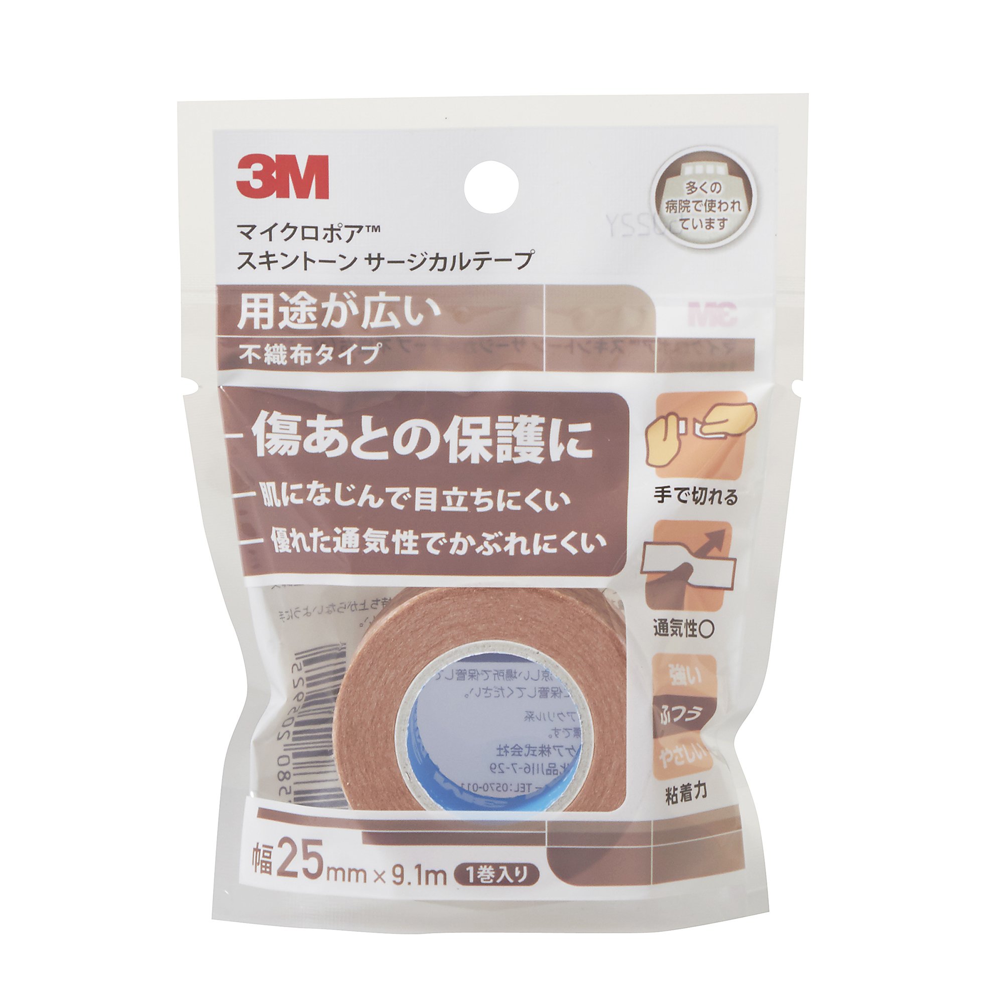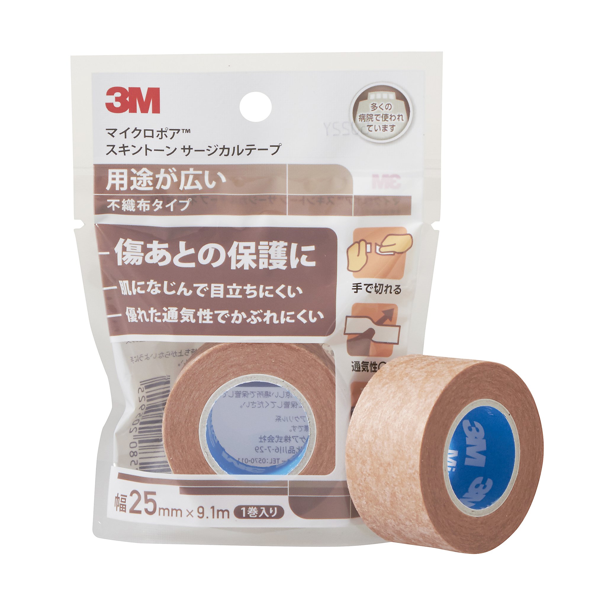 3M micro-pore skin tone surgical tape non-woven fabric beige 25mm width x9.1m 1 Volume containing 1533EP-1