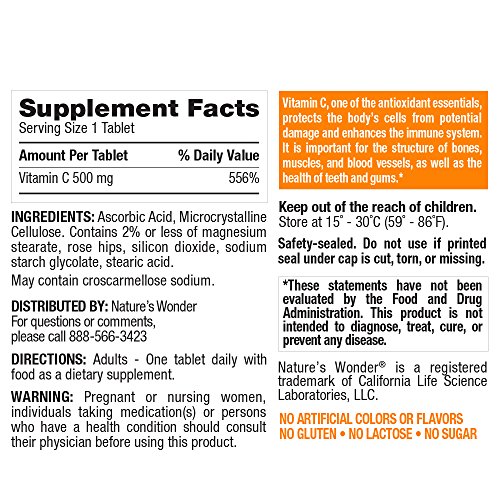 -. Title : Nature's Wonder Vitamin C 500mg RH Tablets, 150 Count