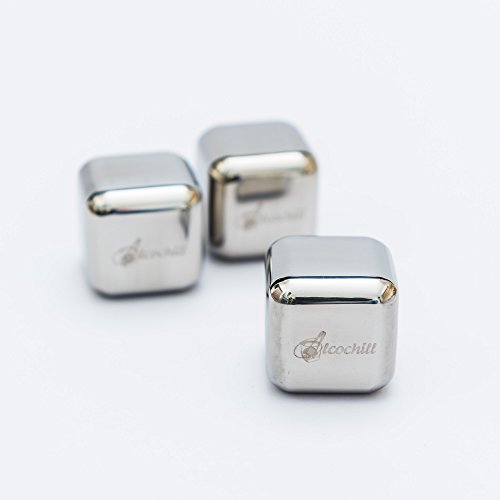 -. Brand : Alcochill -. Color : Stainless steel -. EAN : 0636391563796 -. Feature : SAFE HIGH QUALITY food grade stainless steel whiskey stones / NON-DILUTING re-usable ice cubes for maximum enjoyment of your favorite beverage / TASTELESS & ODOURLESS unlike ordinary ice cubes / EASY TO CLEAN making them easy and painless to reuse over and over / GIFT BOXED ready to be given to the whiskey or wine drinkers in your life -. Label : Alcochill -. Manufacturer : Alcochill -. Model : AC8PC -. PackageQuantity : 8 -. ProductGroup : Kitchen -. ProductTypeName : KITCHEN -. Publisher : Alcochill -. Studio : Alcochill -. Title : Alcochill Set of 8 Metal Stainless Steel Reusable Ice Cubes Chilling Whiskey Stones with Freezer Storage Tray & Gift Box, Whisky Sipping Rocks -. UPC : 636391563796 -. Warranty : Manufacturer warranty for 12 months from date of purchase.