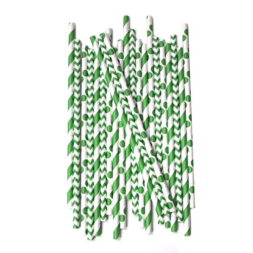 - 24 Cedar Crate Market Brand Green Paper Straws in Stripes, Chevron and Dots Design, 7.75" (Made in the USA)