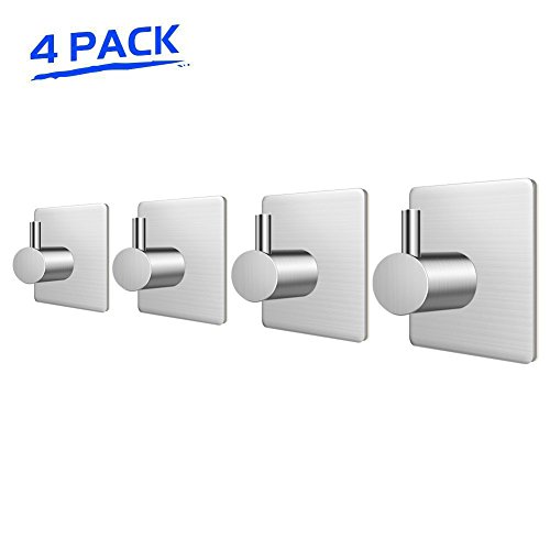 Towel / Robe Hooks 3M Self Adhesive Wall Mount Heavy Duty Hanger for Clothes Coat Hat SUS 304 Stainless Steel Brushed Nickel (4 Pack)