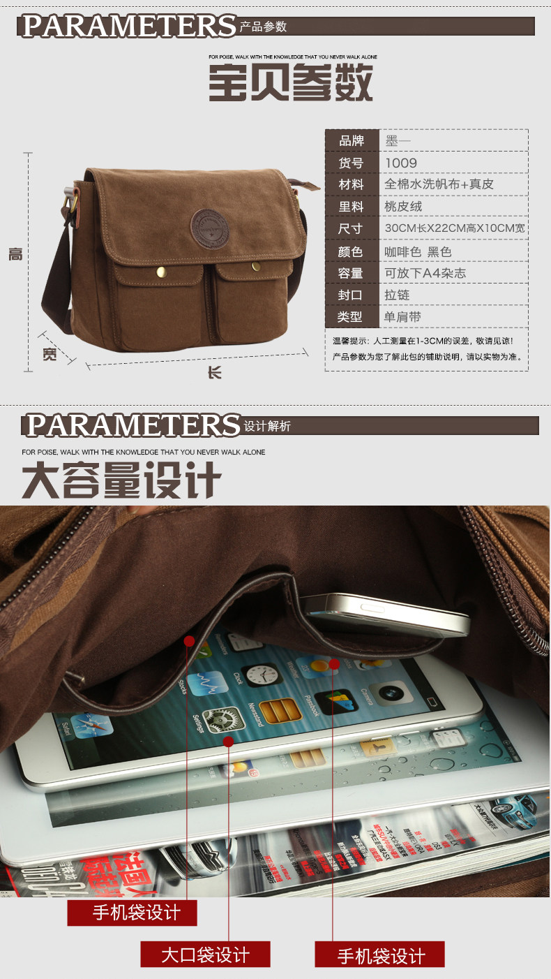 墨一帆布包 户外男包 新款男士背包 单肩包电脑包斜挎包学生包