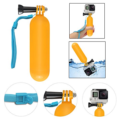 【Schwimmender Handgriff】 Hauptsachlich angewendet zum Wassersport. Hellgelbe Farbe macht die Kamera leicht zu finden und vermeidet zu verlieren, fallen zu lassen. HINWEIS: Das Set muss im Wassersport verwendet werden!