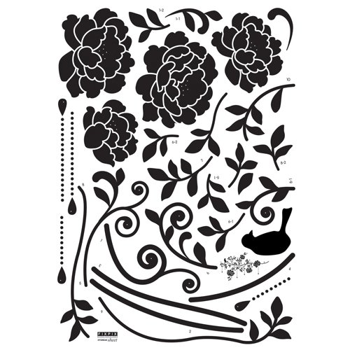 Easy Instant Decoration Wall Sticker Decal - Black Hanging Vineyard Bloom (Velvet with Rhinestones)