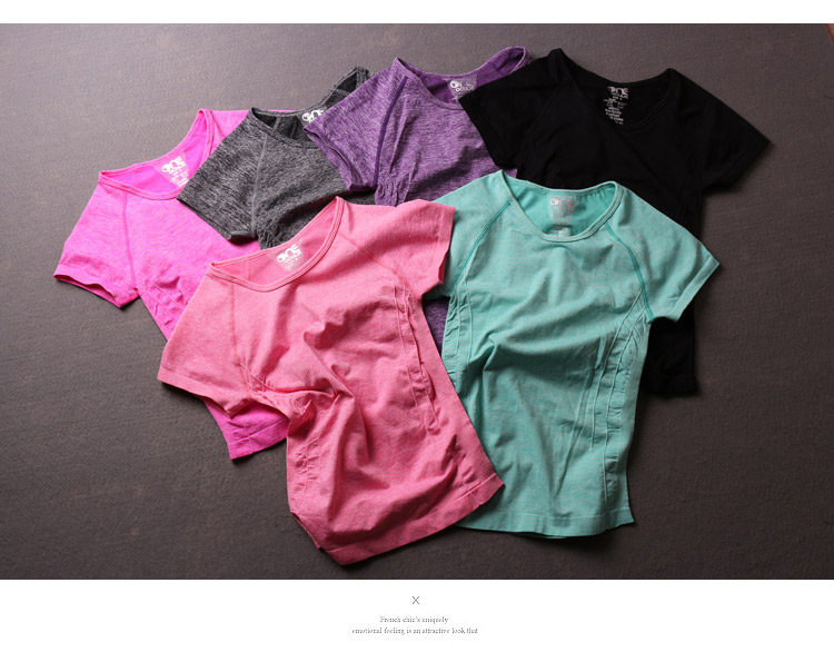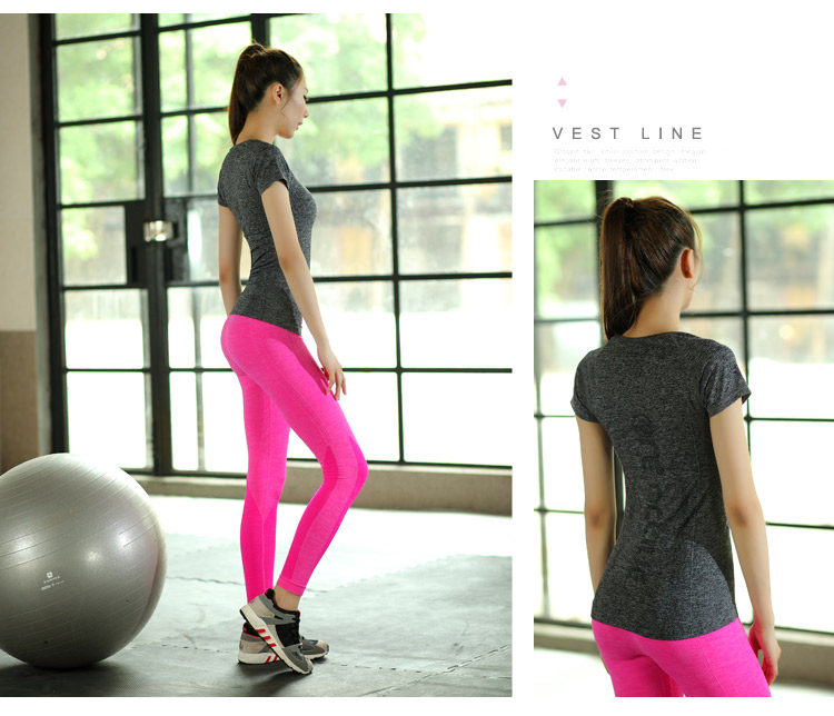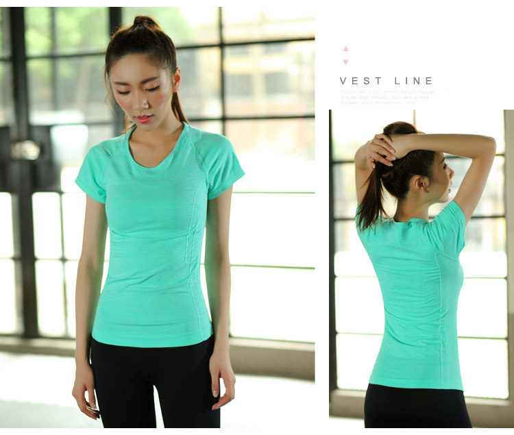 春夏款运动短袖T恤跳操跑步瑜伽服上衣女速干排汗衣大码健身t恤