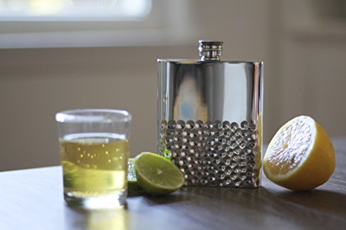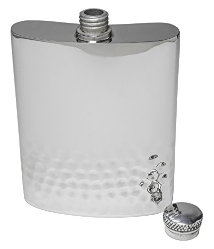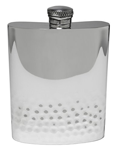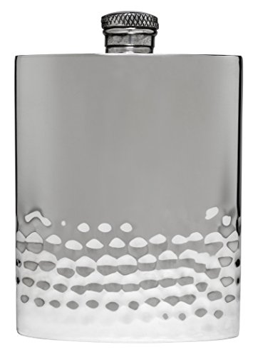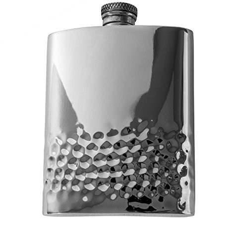 - THE STYLISH WAY TO SIP - Contemporary English pewter flask holds 6 ounces of spirits and is perfect for enjoying a drink on the go. Carry your favorite alcohol or spirit of choice in a stylish silver-colored pewter flask. Enjoy the intricate, smooth hammered finish for a sophisticated look.