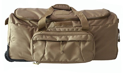 -. Binding : Misc. -. Brand : ARMYCAMOUSA -. Feature : The wheeled deployment bag is made from heavyweight polyester that not only keeps the bag in shape, but also protects your belongings. This bagis a well-organized duffel having the convenience of a modern suitcase and appearance of a traditional duffel bag. / Size: 32"x 17"x14"; Capacity: 124liters,7700 cubic inches ; Weight:10 lbs / Heavy-weight denier fabric; 3 heavy-duty 4" molded wheels; Reinforced handles (1 hand pull / 2 carry) ; Padded, protective interior with divider / 25" heavy-duty molded floor rails with reinforced vinyl bottom; 1.5" webbing strap handles with grip-strip reinforced handle;16 x 8" end pocket with heavy-duty zipper; Heavy-duty, self-healing zippers with pulls. / Zip-off Ditty Bag (8 x 16 x 2"); Mesh lined zip pocket; 11 x 5" clear vinyl zip pouch; Large outer pocket with heavy-duty zipper and pull; Elastic mag holders -. IsAutographed : 0 -. IsMemorabilia : 0 -. Label : ARMYCAMOUSA -. Manufacturer : ARMYCAMOUSA -. MPN : 08360A -. PackageQuantity : 1 -. PartNumber : 08360A -. ProductGroup : Sports -. ProductTypeName : SPORTING_GOODS -. Publisher : ARMYCAMOUSA -. Studio : ARMYCAMOUSA -. Title : Military Tactical Wheeled Deployment Trolley Duffel Bag Heavy-Duty Camping Hiking Running Trekking
