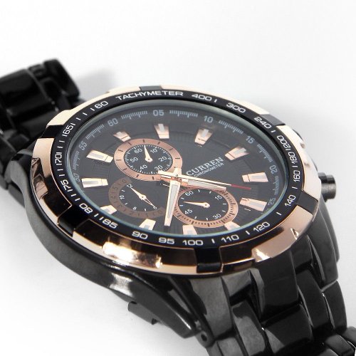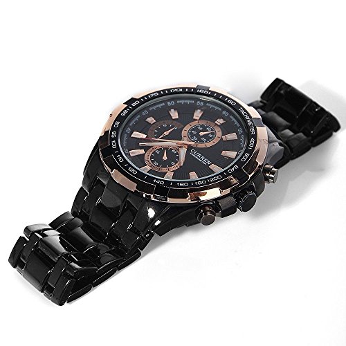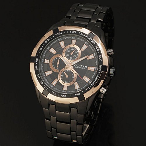 MEN'S BLACK DIAL ROSE GOLD BEZEL QUARTZ ANALOG CLOCK SPORT STAINLESS STEEL BLACK WRIST WATCH