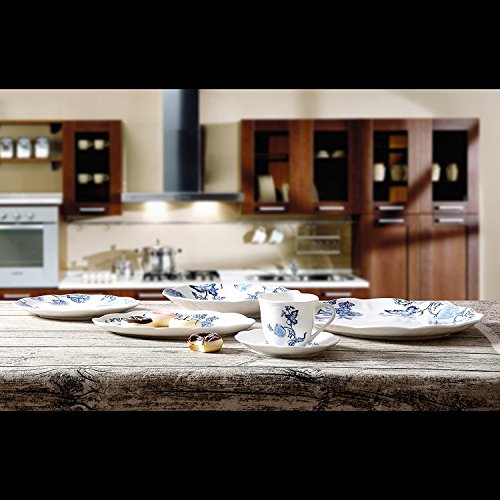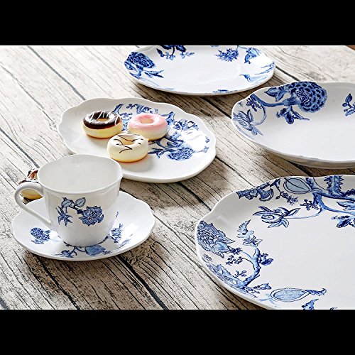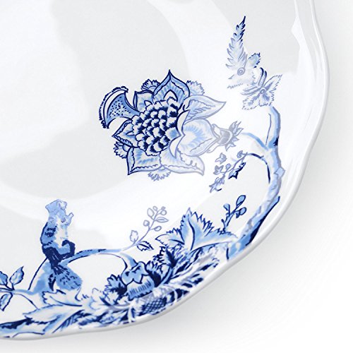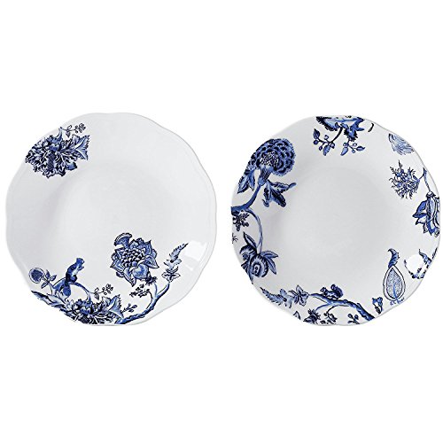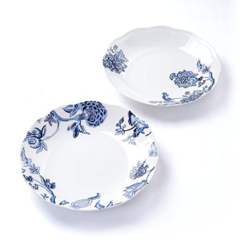 DoubleBlue 9" Rounded Soup Plate (Set of 2) Bone China pastoral for Dinner party feast banquet - Scene of Garden, White and Blue