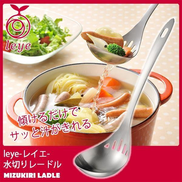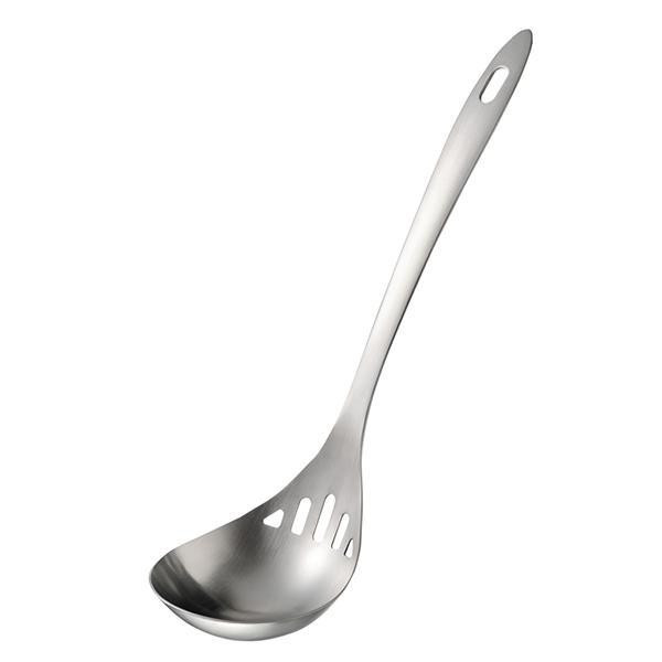 傾けるだけでサッと汁が切れるので、具だけすくうこともできるレードルです。ちょっとした茹でものにはザルがわりに使え、お鍋やみそ溶きなどにも使えます♪ |