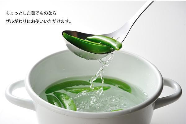 | 傾けるだけでサッと汁が切れるので、具だけすくうこともできるレードルです。ちょっとした茹でものにはザルがわりに使え、お鍋やみそ溶きなどにも使えます♪ |