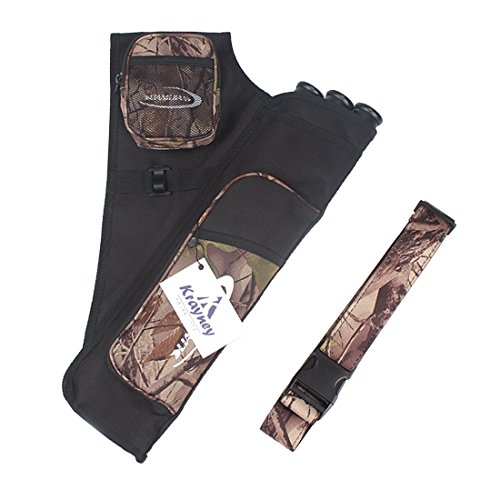 Krayney 3-Tubes Hip Quiver Waist Hanged Camouflage Arrow Archery Carry Bag with Pockets Adjustable Belt