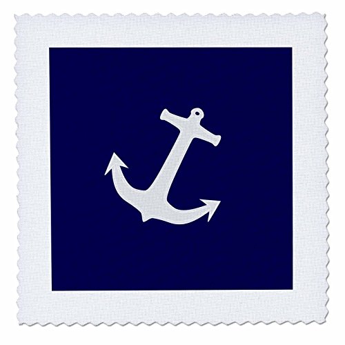 3dRose qs_80374_3 Light Gray Boat Anchor on Navy Blue Quilt Square, 8 by 8-Inch