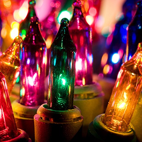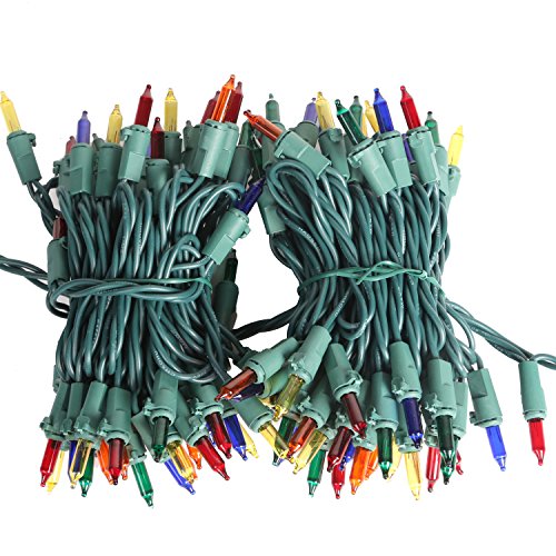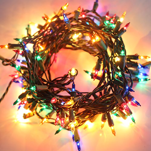 Hykolity Multi Color Mini Christmas Lights - Indoor/Outdoor 100 Count Mini String Light Green Wire Connectable 3" Bulb Spacing UL Listed