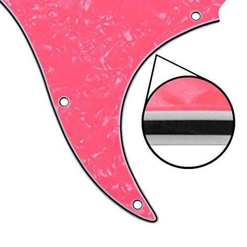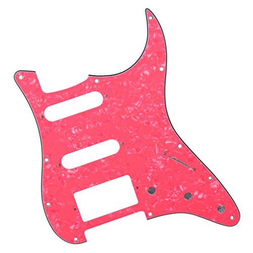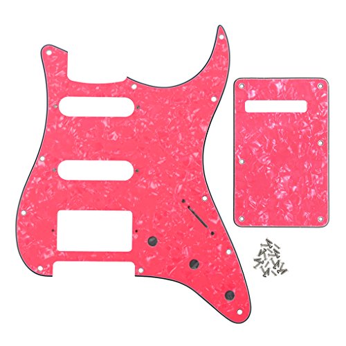 Studio : iknmusic Publisher : iknmusic Product Description Feature: * Fits for American/Mexican Standard Fender Strat Style Guitar..* With pure aluminum foil shield on the backside, not the common aluminum-foil paper on the market, better shielding property and anti-interference.* All materials are environmentally friendly, thermostability, no smell. Multi-layer plates are pressed under high temperature and pressures, to make them close integration between each layer, will not appear curly, deformation, or separation of different layers.* With off set screw holes and beveled edge; Excellent product process ensure the edge of the smooth and structured.Two layers of protective films on the front of pickguards, anti-scratch to protect the guitar.Specification:* Style: HSS(single/single/Humbucker) style pickguard; 11 screws holes in the side of pickguard; 6 screw holes in the side of back plate.Humbucker hole size: 38mm x 70mmHumbucker screws center/center: 78mmSingle coils screws center/center: 77.5mm* Material: Made of 4Ply, 3Ply PVC and 1Ply Pearl material; with pure aluminum foil shield.* Color: Pink Pearl* With protective film on the surface, while using please split it off.* Note:Item's color might be different from the picture because of the aberration.Package Includes:1 x guitar pickguard1 x guitar back plate25 x mounting screws 0