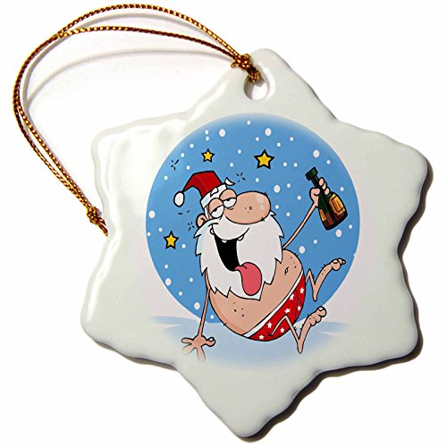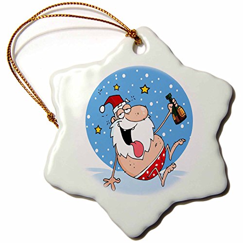 3dRose orn_118671_1 Funny Drunk Santa on Vacation-Snowflake Ornament, Porcelain, 3-Inch