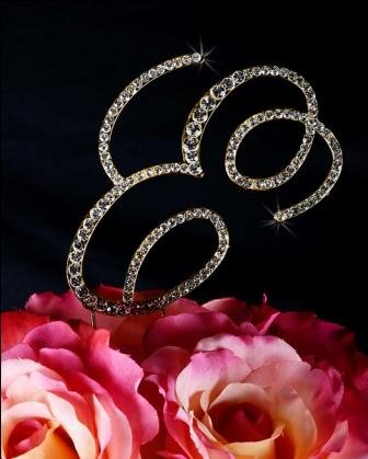Unik Occasions Victorian Crystal Rhinestone Wedding Cake Topper, Large, Letter E, Gold