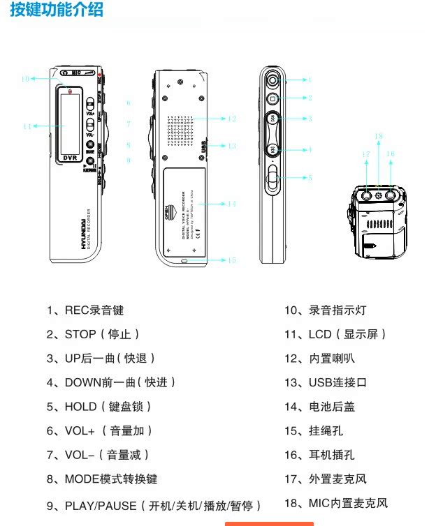 -Recording via high grade built-in microphone
