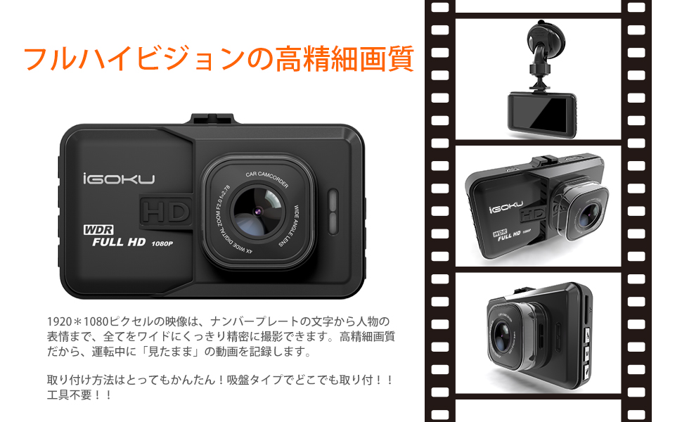 ★ iGOKUドライブレコーダーが吸盤スタンドが付属しています。このスタンドが360度回転可能、好きな角度を調整できます。圧倒的な粘着力で運転中落ちるなどの心配がありません。ドライブレコーダーと組み合わせて車に置いてすぐ使えます。