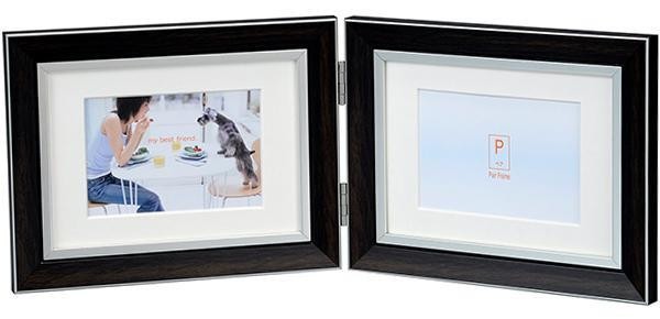 | 落ち着きのある木目調とシルバーラインが印象的なペアのフォトフレーム。 |