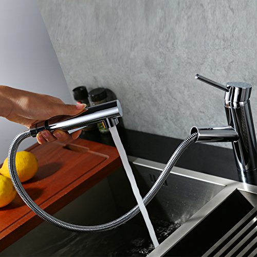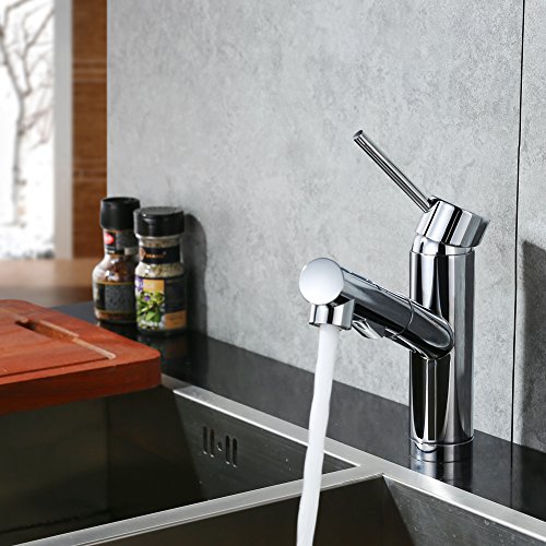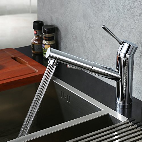 CREA Kitchen Faucet Single Lever Pull Down Sprayer Kitchen Sink Mixer Tap Faucet with Retractable Sprayer Swivel Spout, Chrome