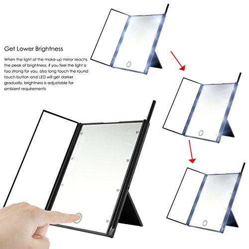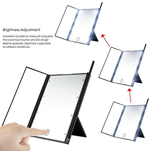 SOONHUA Travel Mirror Tri-Fold Lighted Led Mirror Foldable 8 LED Light Beauty Makeup Cosmetic Application Stand Mirror(black)