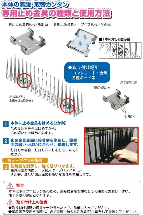 | 柔軟で安全なオールプラスチック製剣山。場所に合わせて枝切りバサミなどで簡単にカットし、猫や鳥が足場にする場所に並べて設置するだけ!猫だけでなく、鳩やカラスよけにも効果的です♪ |