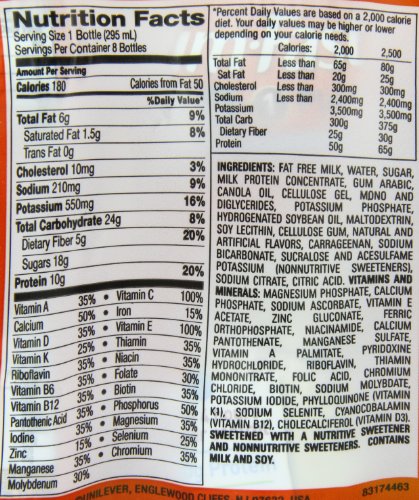 -. Binding : Health and Beauty -. Brand : Slim-Fast -. EAN : 0008346122226 -. Feature : Pack of 8, 10-ounce convenient, re-sealable bottles of Slimfast 3 2 1 Plan Shakes / 180 to 190 calories for each ready-to-drink shake / Up to 4 hours of hunger control with 10 grams of protein and 5 grams of fiber per bottle / One-Third of your recommended intake for most essential vitamins and minerals / For use as part of the Slim-Fast 3-2-1 Plan (TM) -. IsAdultProduct : 0 -. Label : Slim-Fast -. Manufacturer : Slim-Fast -. Model : 10008346122223 -. MPN : 10008346122223 -. NumberOfItems : 1 -. PackageQuantity : 1 -. PartNumber : 10008346122223 -. ProductGroup : Health and Beauty -. ProductTypeName : HEALTH_PERSONAL_CARE -. PublicationDate : 2011-09-02 -. Publisher : Slim-Fast -. ReleaseDate : 2011-09-26 -. Size : 8 Count -. Studio : Slim-Fast -. Title : SlimFast Ready to Drink Bottles, French Vanilla Meal Replacement Shake, 10-Ounces, 8 Count -. UPC : 008346122226