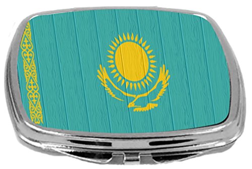 Rikki Knight Compact Mirror on Distressed Wood Design, Kazakhstan Flag, 3 Ounce