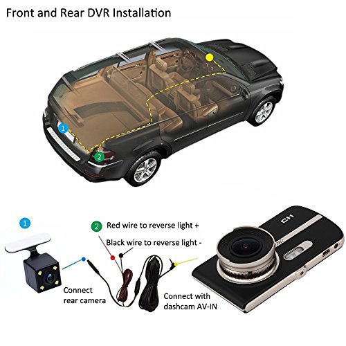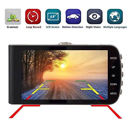 - ★DUAL CHANNEL : 4.0" FULL HD 1080P 170 degree front camera + VGA 120 degree rear camera, obtain full lane coverage, shows more things and can switch among back lens/front lens/both front and back lens display. When reversing, the rear camera is turned on automatically, and the camera will show the reversing image to assist the user!