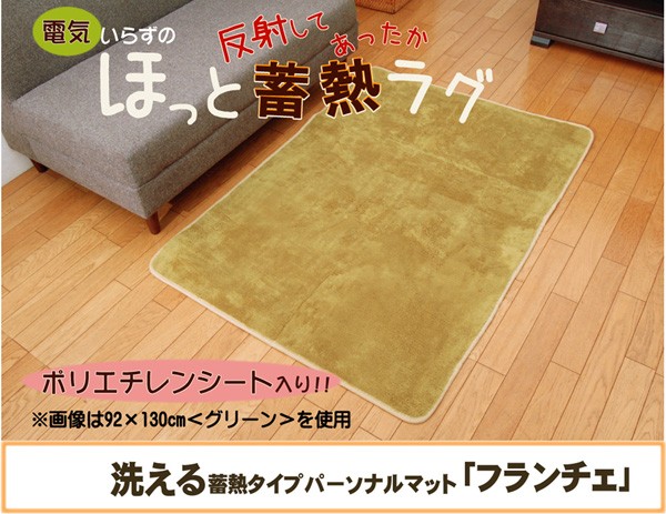 【商品名】洗える 蓄熱ルームマット 蓄熱カーペット 『フランチェ』 グリーン 92×130cm(ポリエチレンシート入り)
