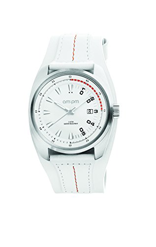 AM:PM Unisex-Armbanduhr PG126-U122 Stahl Gehäuses Weiß Leder Armband Quartz