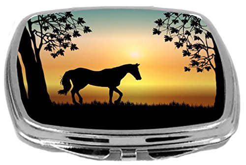 Rikki Knight Compact Mirror, Horse Silhouette On Aqua Sunset