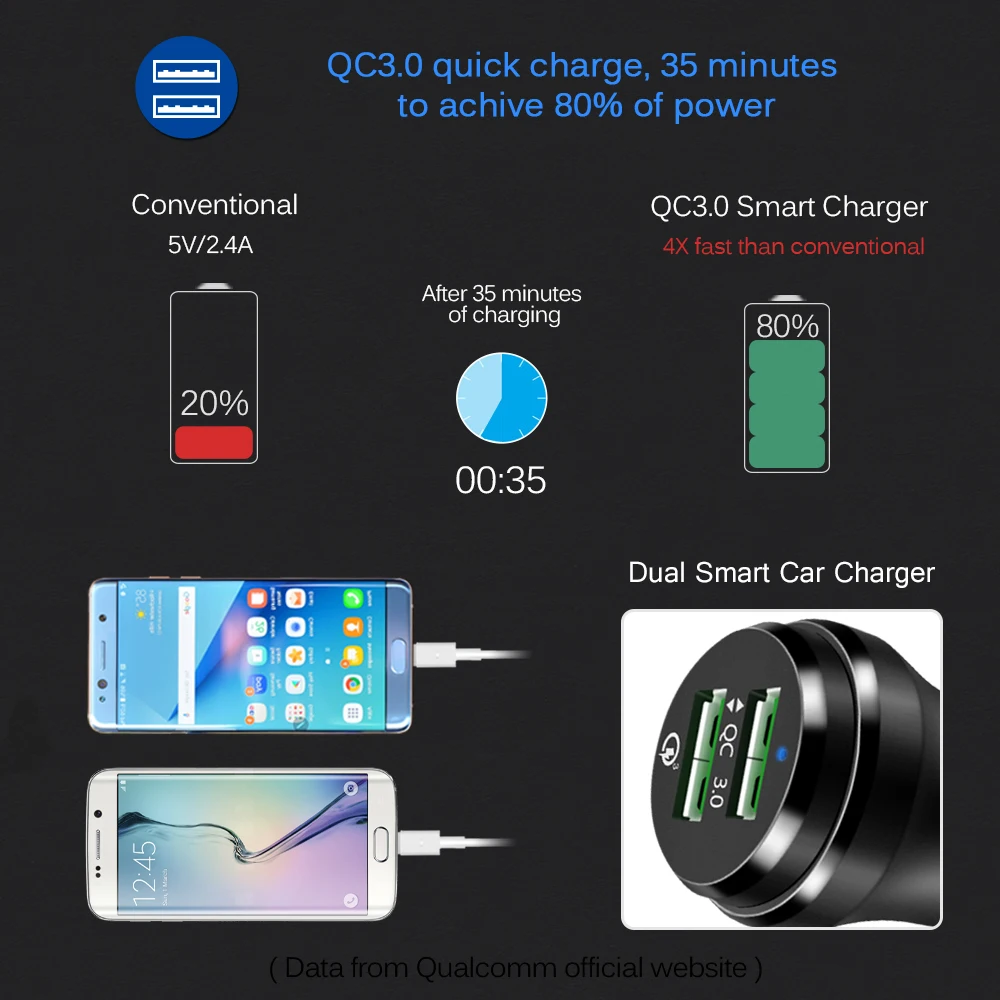 Support Quick Charge Technology:Qualcomm Quick Charge 3.0